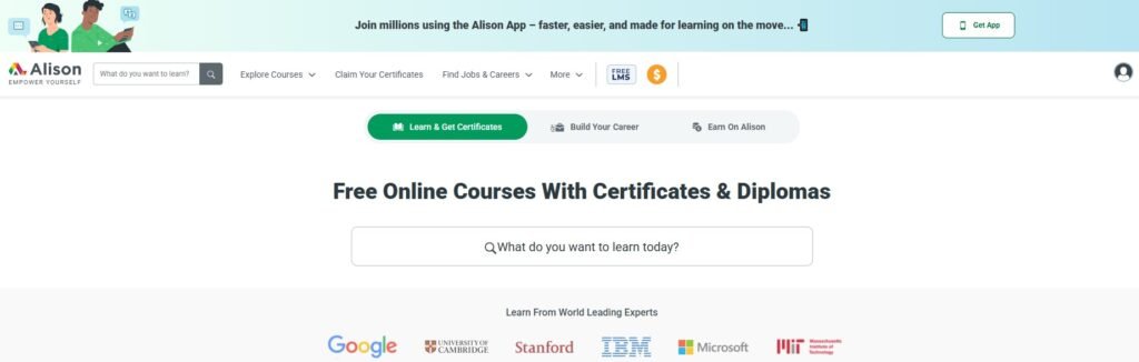 Alison is ideal for learners wanting quick skill upgrades or basic knowledge. The platform supports self-paced learning with simple course structures. It also offers learning paths for career development.