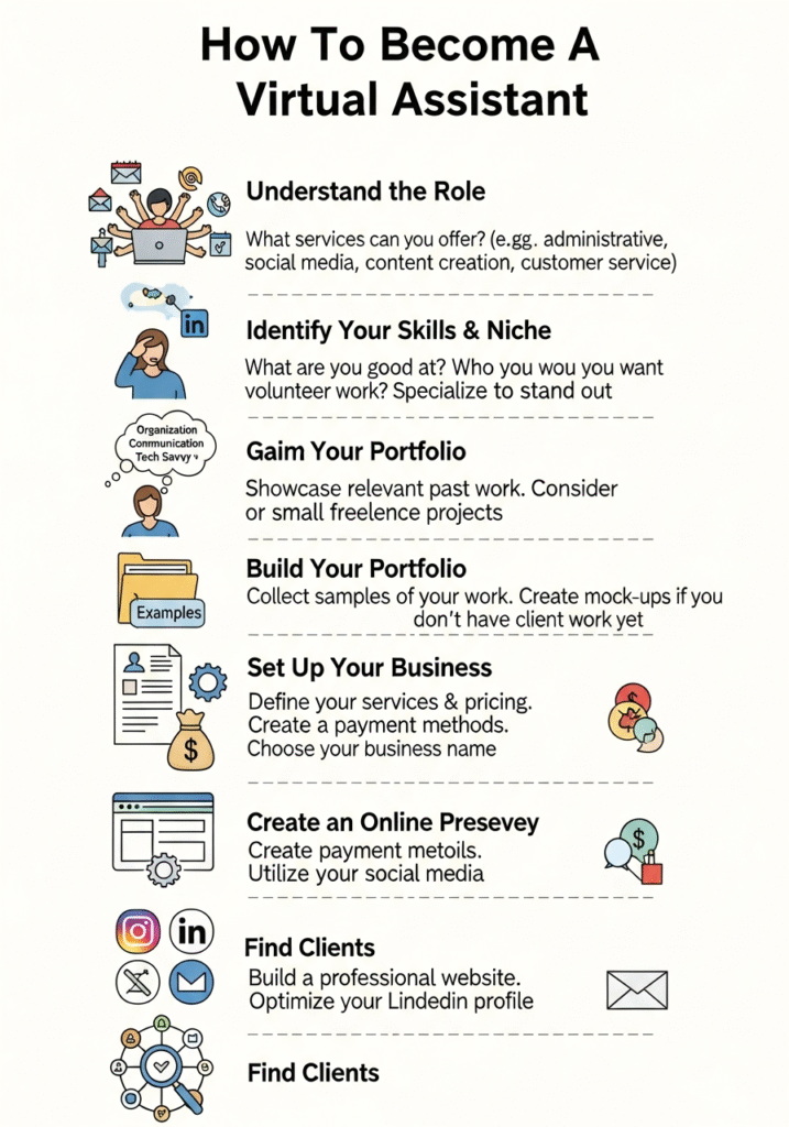 Virtual assistant jobs have become more popular as many companies now prefer remote work. Becoming a virtual assistant (VA) allows you to work from home and earn a good income. You can assist clients with administrative tasks, manage schedules, and handle emails. Here’s how to become a virtual assistant.